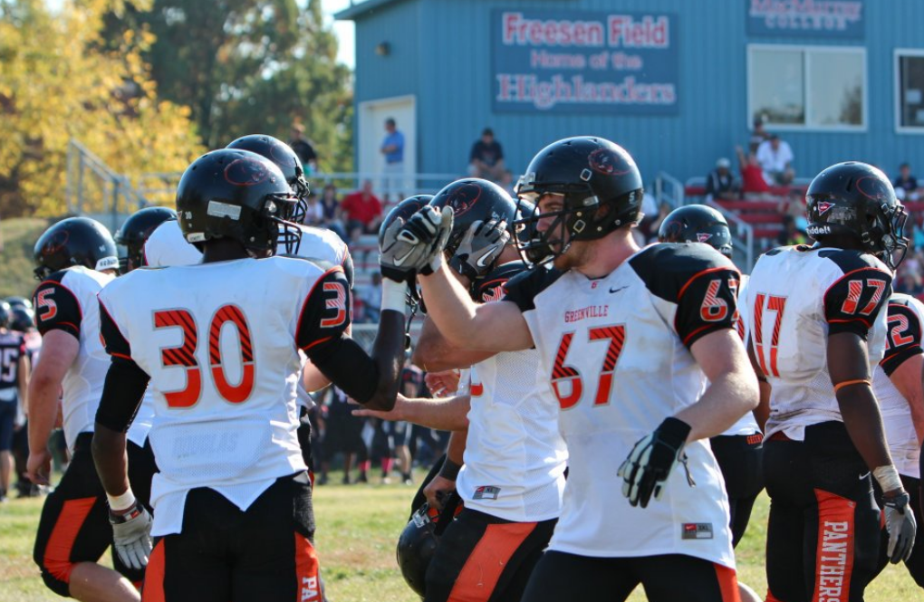 For the second consecutive week the Panther offensive exploded for over 50 points in their win Saturday. The Greenville College Panthers (2-3, 2-2 UMAC) used a balanced offensive attack to defeat the MacMurray College Highlanders (0-5, 0-4 UMAC) 62-7. Six different Panthers made it to the end zone on Saturday as the offensive gained 694 yards on total offense. The run heavy Panthers gained 455 of those yard on the ground on 62 attempts.